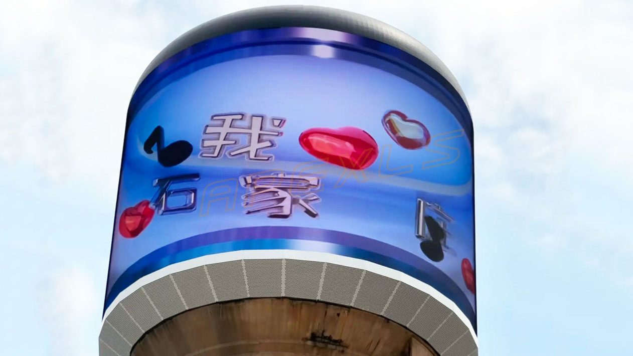 The unique “Microphone” artistic design features a screen with a diameter of 10 meters, a height of 9.7 meters, and a total area of 366 square meters.